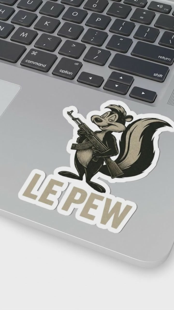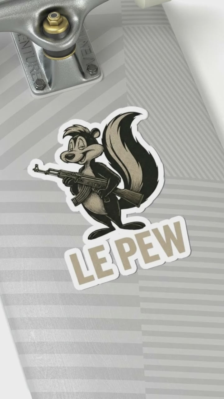 Le Pew Sticker — Retro Skunk Character with Rifle, Funny LE PEW Kiss-Cut Vinyl Sticker for Laptops & Gear